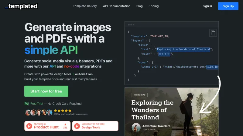 Templated | Generate images and PDFs with a simple API
