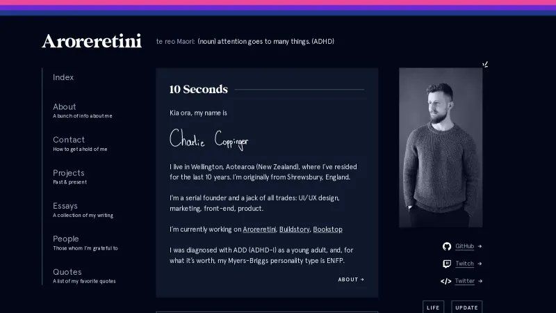 Aroreretini • personal site of Charlie Coppinger